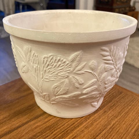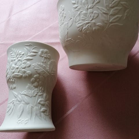 Suunnittelija Gunvor Olin-Grönqvist. Sisäpuoli lasitettu, ulkopuoli matta. Ehjä ja siisti. Korkeus 12,5cm, halkaisija ylhäällä 16cm ja halkaisija alhaalla n.11cm. Ei Toridiiliä. Nouto tai Matkahuollon lähetys.