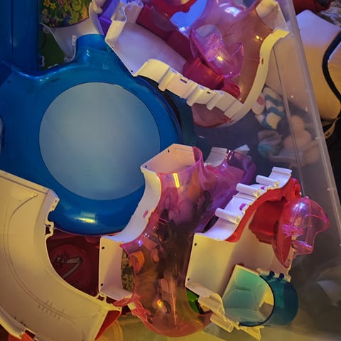 Iso pahvilaatikollinen zhuzhu pets radan osia sekä uusi hamsterin pyörä setti alkuperäisine paketteineen ja käyttöohjeineen. Lisäksi muutama hamsterin vaate ja asuste. 11 hamsteria joista osa kaipaa uudet patterit. Muistelisin että osa hamstereista ei liiku kunnolla, mutta tämäkin varmaan korjaantuu uusilla pattereilla. Nouto Ilola tai lähetys.