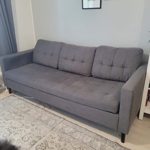 Hyväkuntoinen harmaa sohva myynnissä. Nouto paikanpäältä ja maksu käteisellä.