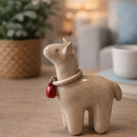Ihana lammaskoriste keramiikasta. Pieni, vaaleasävyinen lammashahmo, jossa kohokuvioitu villapinta ja kaulassa naru sekä pienet kellot. Koko noin 15 x 15 cm