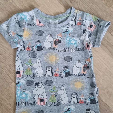 Muumi-paita, koko 98cm. Paljon käytetty paita mutta edelleen hyvässä kunnossa seuraavalle. Hajusteeton koti, ei lemmikkejä.