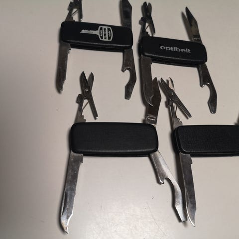 Kolme taittoveistä. Kaksi pullon avaaja pienellä veitsellä ja yksi avaimenperä missä veitset. Iso sininen on Solingen ja siinä kahvassa tummuutta. Yht. 6 kpl Myydään yhteishintaan diili tai nouto.