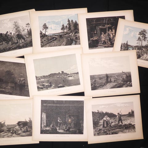 11 kpl kivipiirrosta Savosta v. 1845-52, aitoja vanhoja