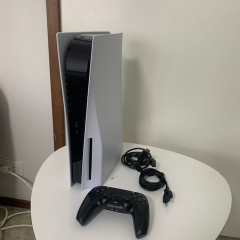 Myynnissä Ps5 Levyasemallinen pelikonsoli, alkuperäinen ohjain ja tarvittavat kaapelit.