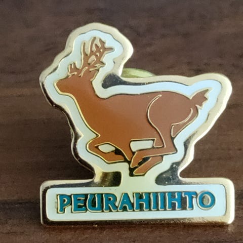 Myydään Peurahiihto- keräilypinssi(Kainuu, Kuhmo). Otettu pussista vain kuvausta varten.