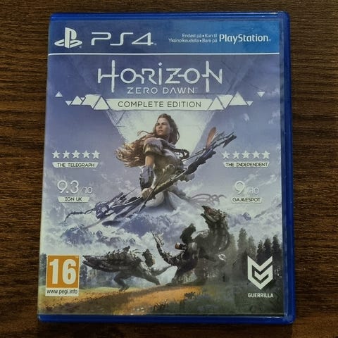 Sony Horizon Zero Dawn PS4 -pelikotelon teräskuori. Kyseessä on metallinen steelbook-kotelo Playstation 4 -pelille Horizon Zero Dawn. Kotelossa on pelin kuvitus etu- ja takakannessa sekä sisäpuolella. Tuote on tyhjä kotelo ilman pelilevyä ja ohjekirjaa, tarkoitettu PS4-pelin säilytykseen tai kokoelmakäyttöön.