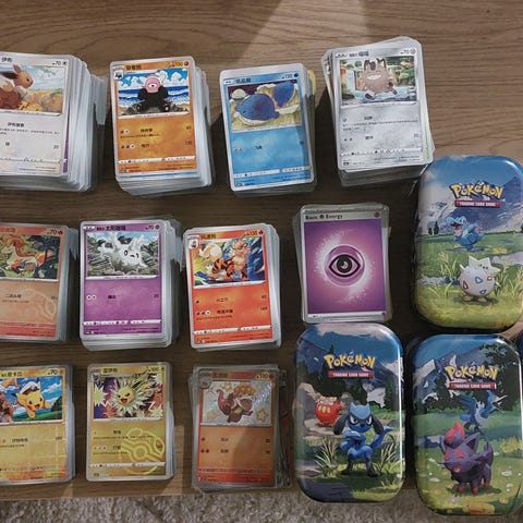 Myydään 1 kg Pokémon Brilliant Stars ‑bulkkia siistissä Arceus‑teemaisessa boksissa.