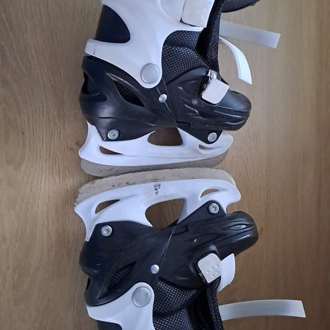 CCM Tyke Black lasten ensi luistimet, koko 30-32. Väri musta-harmaa. Luistimissa on muovinen kuori ja säädettävä remmikiinnitys jalkapöydän päällä.