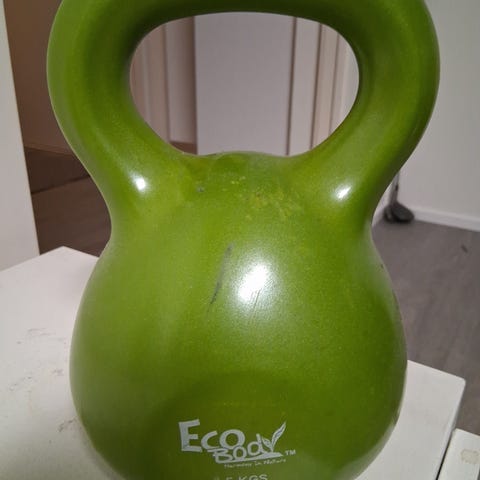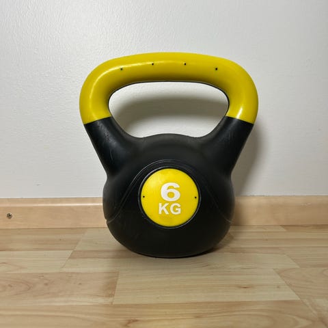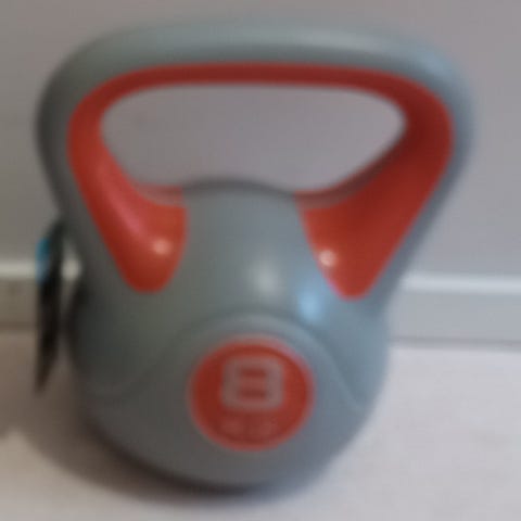 Vesitäytteinen kahvakuula. Uutena ostettu kaappiin pölyttymään ja viemään tilaa.