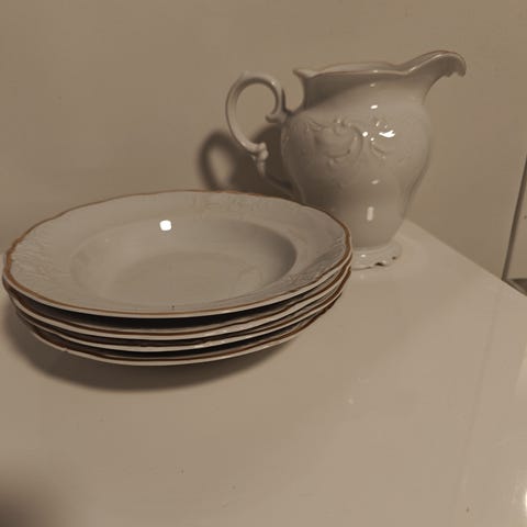 Valkoinen astiasto posliinia