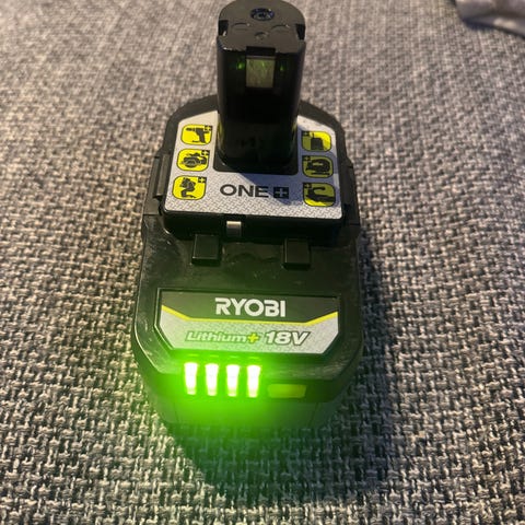 Hyväkuntoiset one+ sarjan akku ja laturi. 2Ah akku ja 2A laturi. Testasin akun vertaamalla uuteen ja kapasiteetti 94% uudesta eli oikein hyvä.