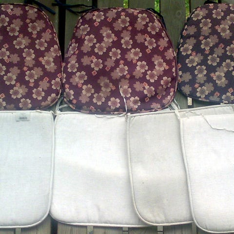 Tästä hyvät puutarhakalusteet kesäksi. Tuolit ja pöytä kokoontaitettavia. Paikoitellen maalia irronnut ja pientä ruostetta pinnassa, mutta muutoin hyvässä kunnossa.