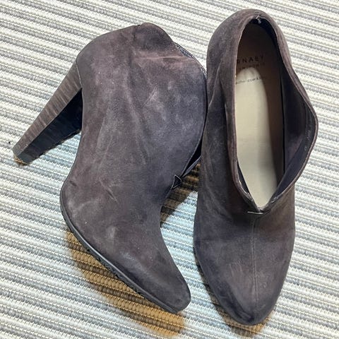 HIGHT merkkiset nilkkurit/Ranska, koko 37. Väriltään mustat nilkkapituiset korkokengät, joissa on paksu korko ja vetoketju takana. Materiaali on mokkanahka ja kengissä sileä musta nahka remmiyksityiskohta nilkan ympärillä. Sopivat käytettäväksi esimerkiksi arki- ja juhlapukeutumisessa.