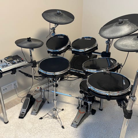 Hyväkuntoiset ja toimivat Alesis-sähkörummut.