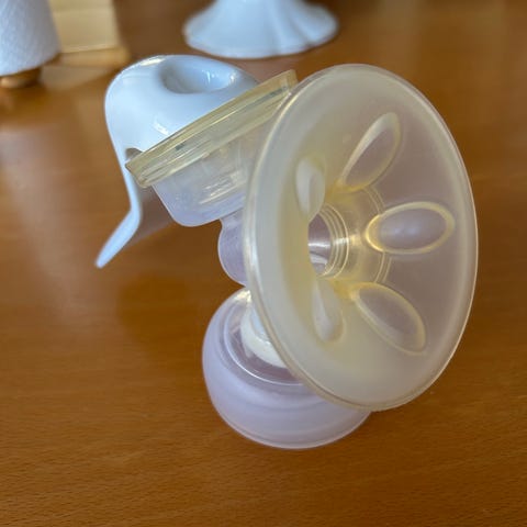Annetaan silikoninen alipainepumppu. Sen voi steriloida keittämällä. Silikoni hieman kellastunut mutta vielä käyttökelpoinen ja kaikki osat tallella.