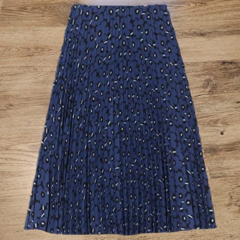 Marimekon kaunis ja näyttävä piiru piirto unikko placement hame. Kauniisti laskeutuvat ja hulmuavat vekit, upea kuosi ja kuminauhavyötärö. 100% polyester. Koko M. Vyötärönymp. 81cm, joustaa tästä paljon, pituus 84cm. Erinomainen kunto.