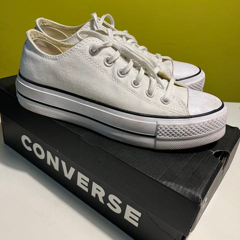 Myydään muutaman kerran käytetyt Conversen mustat matalavartiset platform tennarit.