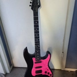 Mukana kantopussi, vahvistinkaapeli sekä lattiateline.
