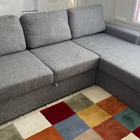 Kankaassa pieni repeämä sohvan takana alaosassa. Taloudessa ei ole lemmikkejä eikä täällä tupakoida.