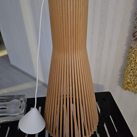 Alkuperäistä 4m johtoa lyhennetty 2,68 cm elikkä nykyinen johdon pituus 1,32cm ja roikkuu 2,7m korkeasta katosta.