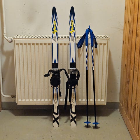 Sukset Peltonen mirage 150cm ja sauvat swix 100 cm. Vain käteinen ja haku