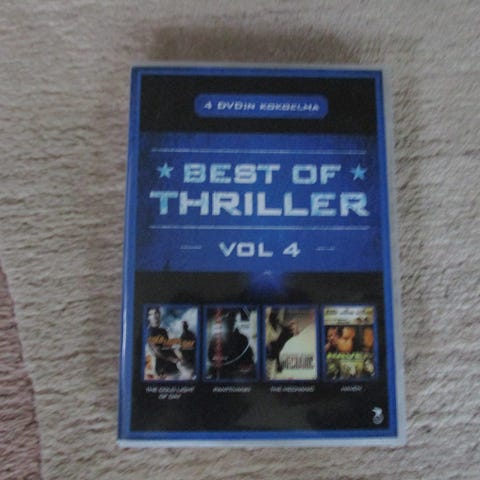 Best of Thriller Vol 6 dvd-elokuvakokoelma. Pakkaus sisältää neljä trillerielokuvaa yhtenä 4 dvd:n kokoelmana. Kotelo on muovia ja levyjen formaatti on dvd. Sopii dvd-soittimelle ja elokuvien katseluun kotona. Ikäraja 16 merkintöjen mukaan. Suomi txt. NELJÄ ELOKUVAA.