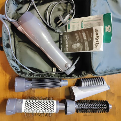 BaByliss Multistyle 1000 ilmakiharrin. Mukana tulee säilytyspussi, johon kihartimen saa pakattua säilytystä varten.