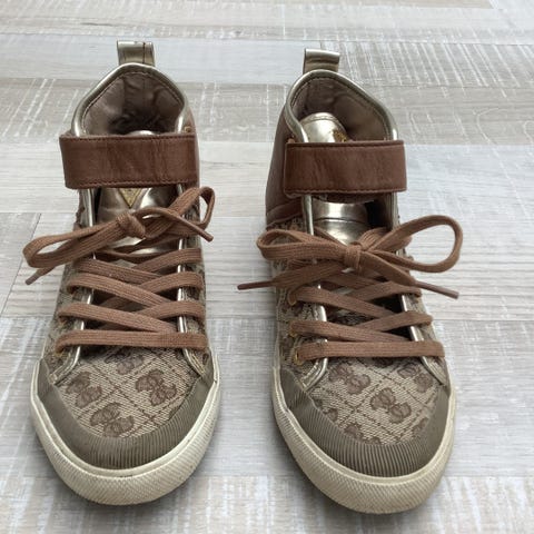Guessin hopeiset tennarit. Koko 38. Kunto on muuten erittäin hyvä mutta pohjalliset on mennyt ruttuun joten ne pitää vaihtaa.