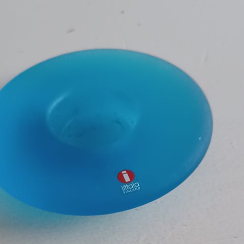 Iittalan Nappi kynttilänjalka. Väri matta kirkas. Halkaisija 12 cm. Ehjä ja särötön. Suunnittelija Markku Salo.