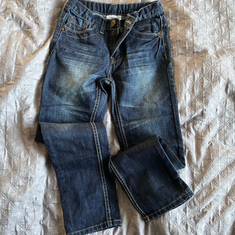 Myydään siistikuntoiset poikien harmaat housut, pehmeää farkuntapaista kangasta. Slim fit -malli. Koko 152 cm.