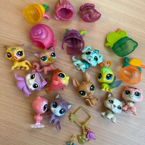 Littlest Pet Shop eläinfiguurit ja minihahmot sekapaketti. Pakettiin kuuluu useita erikokoisia muovisia eläinhahmoja, kuten kani, apina, lintuja ja muita eläimiä sekä muutama pieni lisäosa. Hahmot sopivat leikkeihin ja kokoelmiin, ja ne ovat yhteensopivia muiden Littlest Pet Shop -sarjan lelujen kanssa.