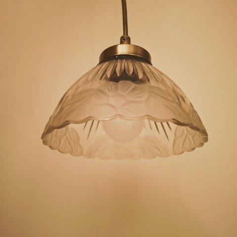 Myydään,ylimääräiseksi jäänyt kattolamppu. Kupu huurrettua lasia. Kiinnitys kattokoukkuun.