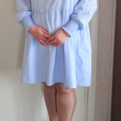 Kunto uutta vastaava. Napakka materiaali, hihat eivät ole täyspitkät. Musta pohjaväri, kaunis tummansininen pintakuviointi.