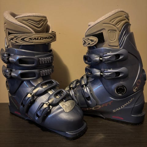 Salomonin juniorimallin laskettelumonot, hyväkuntoiset, muutamia kertoja käytetty. Koko 24, vastaa n. kokoa 36.