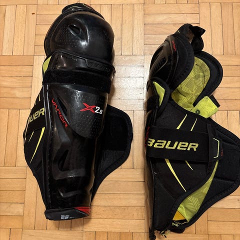 Bauer Vapor X-Rival juniori jääkiekkosäärisuojat. Väri musta/punainen.