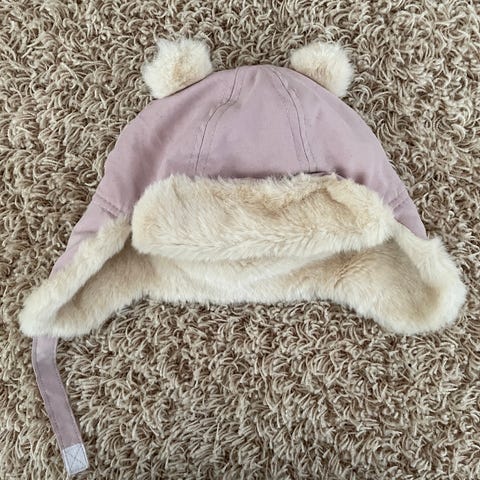 Kuvan talvilakki. Fleece vuori. Reunoilla ja korvien kohdalla karvaa.