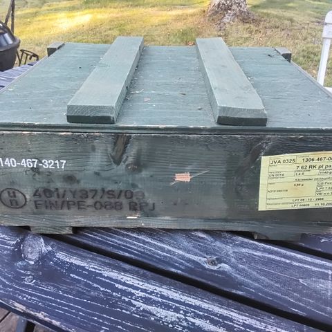 Myydään vanha kranaattilaatikko vaikka säilytyslaatikoksi tai sisustukseen. Mitat noin 50x36x19