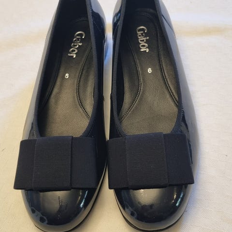 Gabor ballerinat, koko 39. Väriltään mustat. Pyöreäkärkinen malli, jossa edessä solmukohtainen nauhayksityiskohta. Päällinen näyttää olevan mokkapintainen ja sisäpohja on pehmustettu mukavuuden lisäämiseksi. Pohjassa kuviointi paremman pidon takaamiseksi. Sopivat arkeen ja siistimpään käyttöön.