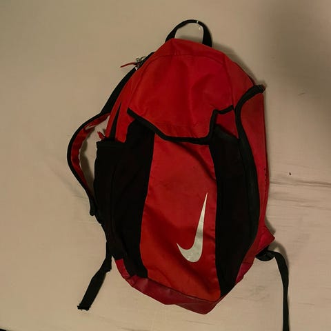 Käytetty, hyväkuntoinen. Vetimet kuluneet (maali lähtenyt, ks. kuva), muuten käytönjälkeä ei juurikaan näy. Palloverkko, sivuilla pienet taskut (toisessa verkko, toisessa kangas), sisällä selkää vasten erillinen taskuosa. Pohja vahvempaa kangasta.