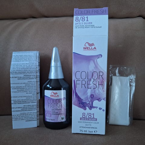 WELLA COLOR FRESH UUSI hiussävyte 8/03 LIGHT NATURAL GOLD BLONDE 75ml. Wella Professionalsin Color Fresh on ihastuttava sävyte, joka vahvistaa ja raikastaa hiusten sävyä sekä hoitaa niitä ihanteellisesti. Levitä sävytettä hiuksiin, kunnes se vaahtoaa. Anna vaikuttaa muutaman minuutin ajan ja huuhtele. Anna sävytteen vaikuttaa 3–10 minuutin ajan, kun haluat kevyen värin raikastuksen. Voit myös antaa sävytteen vaikuttaa 20 minuutin ajan, kun haluat intensiivisemmän ja pitkäkestoisemman sävyn. Laadukas merkkituote, hinta kaupassa 20,50e. Nouto tai postimaksu. Myös Toridiili käy.