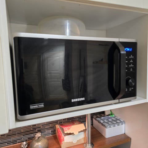 Hyvässä kunnossa oleva mikro, puhdistan kunnolla rasvajäljistä ennen ostoa.