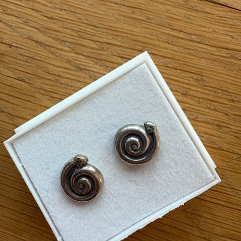 Vaskikäärme-nappikorvakorut. Pronssia, pinta kulunut.