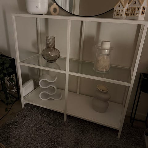 Ikean mallistosta poistunut valkoinen versio VITTSJÖ lasihyllystä.