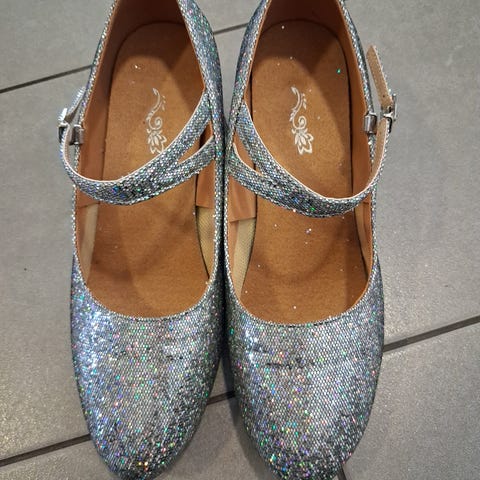 Trendy Line merkkiset korkokengät, joissa glitter koristelu. Pientä kulumaa sisäpuolella, muuten hyväkuntoiset.
