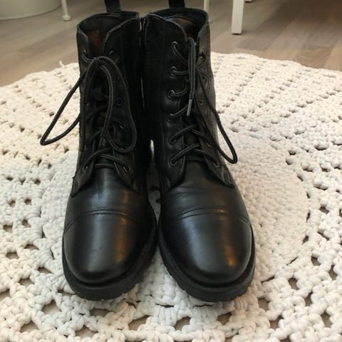 DeFacto-merkkiset kiiltävät, mustat, nauhalliset nilkkurit/maiharit koossa 36. Lähes käyttämättömät!