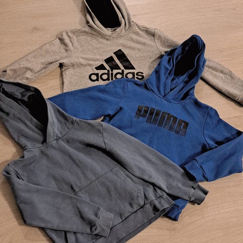 HM takki erinomainen kunto 16e. Adidas huppari hyvä kunto 9e. Adidas paita 6e hyvä kunto. Zara paita 5e erinomainen kunto. Björn Borg pipo 3e
