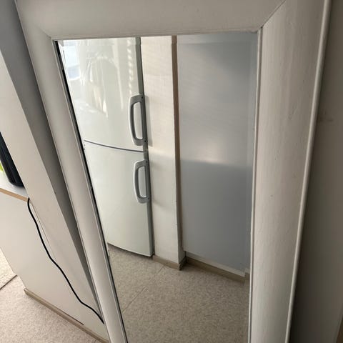 Myydään muuton takia iso peili, jonka mitat ovat 120x40cm. Peilin takana on koukut, josta sen saa helposti laitettua roikkumaan seinälle.