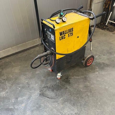 Legendaarinen, tehokas Wallius LKC-180 hitsauskone. Laitteessa on pyörillä liikkuva runko ja erillinen kaasupullo telineessä. Etupaneelissa on säätimet hitsausvirralle ja langansyötölle sekä liitin hitsauspistoolille. Koneen sivussa on kotelo hitsauslangalle kelalla ja langansyöttömekanismi. Soveltuu metallien hitsaukseen työpajassa tai autotallissa.
