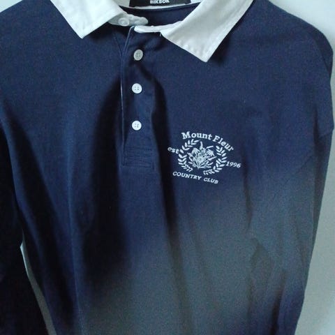 Punavalkoraidallinen kauluspaita koossa S. Sivuilla napitettavat pienet halkiot. Materiaali ei tiedossa.