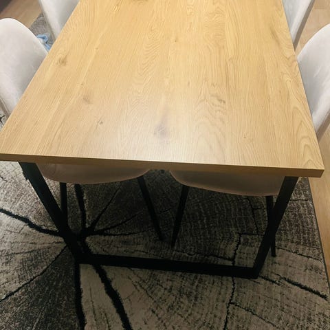 Myydään nätti ruokailuryhmä. Käytön jälkiä, kolhuja ja naarmuja on mutta yleisilme siisti. Mahtuu hyvin farmari autoon.